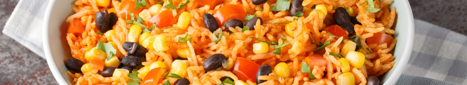 Jerk chicken, Mexican rice, corn salsa, black beans, lettuce, chipotle crema